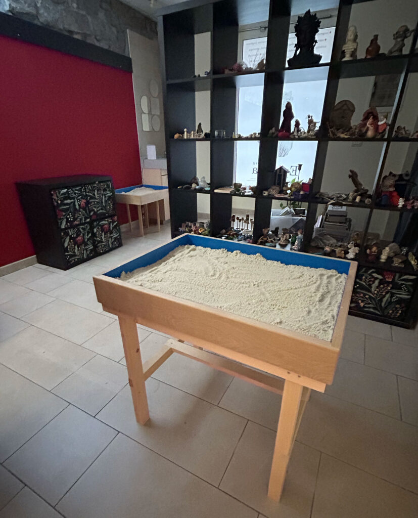 Temelji na ustvarjanju »svobodnega in varnega prostora«, kjer klient s pomočjo peskovnika in miniaturnih figur oblikuje prizore svojega notranjega sveta. Podobe pogosto presežejo besede – razkrivajo nezavedne vsebine in spodbujajo naravno težnjo psihe k samouravnavanju in celovitosti.